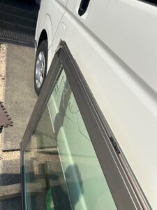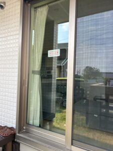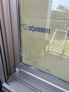 掃き出し窓のガラスに物をぶつけてしまい、ペアガラスが割れてしまったとのことで、修理のご依頼をいただきました。