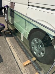まずはサッシを取り外し、四方枠を分解してガラスを取り出します。