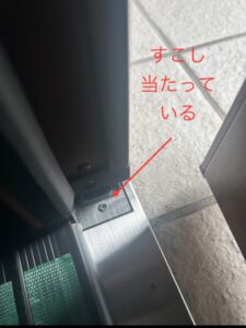 確認したところ、扉自体がわずかに下がっており、開閉の際に下端が床面に接触している状態でした。
